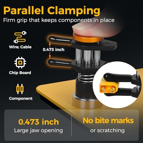 ๐จ๐ป๐ถ๐พ๐๐ฒ ๐๐๐ฎ๐น-๐๐น๐ฎ๐บ๐ฝ ๐ณ๐ผ๐ฟ ๐๐ฎ๐๐๐ฒ๐ฟ ๐ฆ๐ผ๐น๐ฑ๐ฒ๐ฟ๐ถ๐ป๐ด: Hold your PCB board in one clamp and your wire in the otherโat the same time! Featuring a quick-release mechanism, a simple press is all it takes to effortlessly attach or remove your components for a faster, smoother workflow