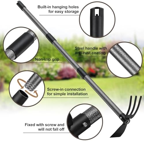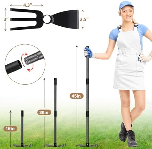 Easy to Assembly & Storage: You can adjust the length of the gardening tool by assembling all 3 poles together or by assembling just 1 or 2 poles for smaller jobs where that length isn’t needed. Also includes a hang hole for convenient storage. Any issue on receiving or using this weeding tool, please feel free to message us.