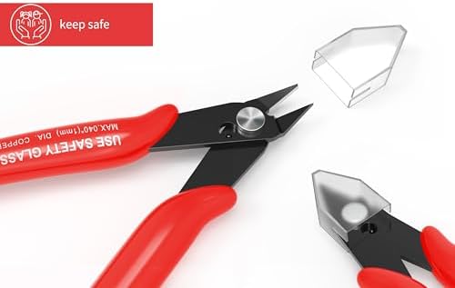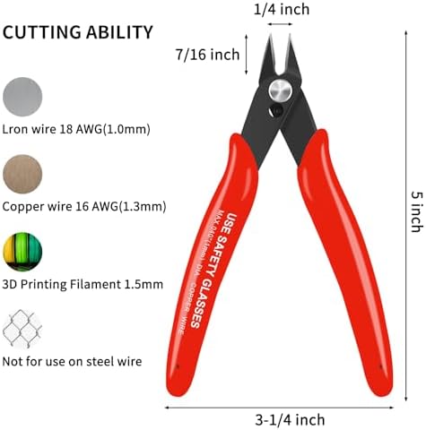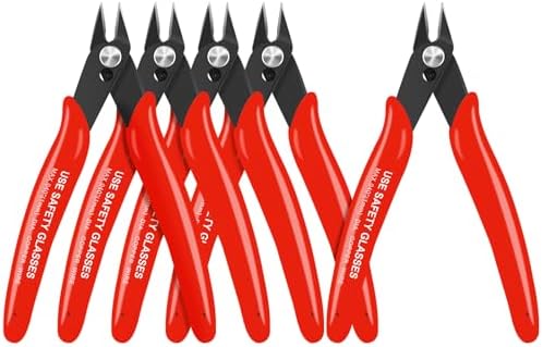 Economical diagonal cutter – 5pcs 170 micro flush cutter, red, 5 inches, made from high-hardness carbon steel, 10mm long jaws can be cut up to 18 AWG copper wire (0.04 “/ 1mm).