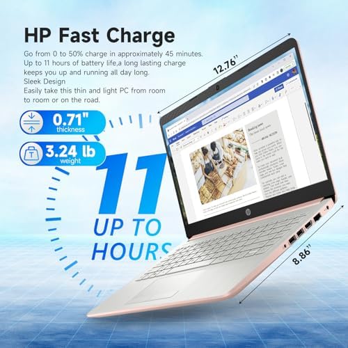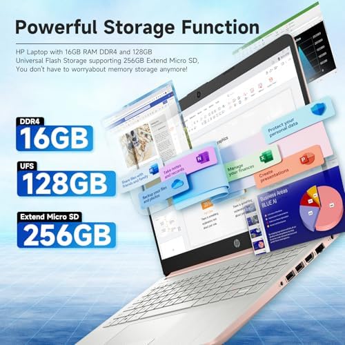 🧩Upgraded Memory, Dual Storage & All-Day Battery: With 16GB DDR4 RAM, the HP 14 laptop handles multiple tasks at once without slowing down. Store your files on the fast 128GB UFS plus a 256GB microSD card for extra space. Non-volatile storage ensures stable performance, while up to 12 hours of battery life and HP Fast Charge (50% in 45 minutes) keep you powered through work, study, or entertainment.