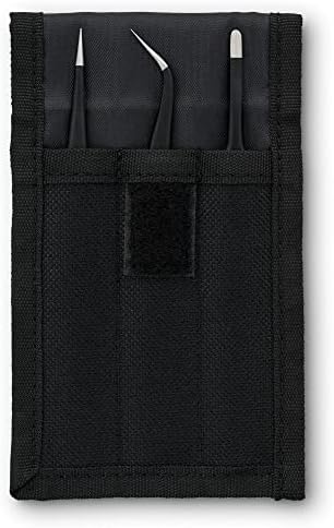 COMPLETE SET: Includes Extra Fine, Angled, and Flat Tweezers. Convenient fabric tool storage bag.