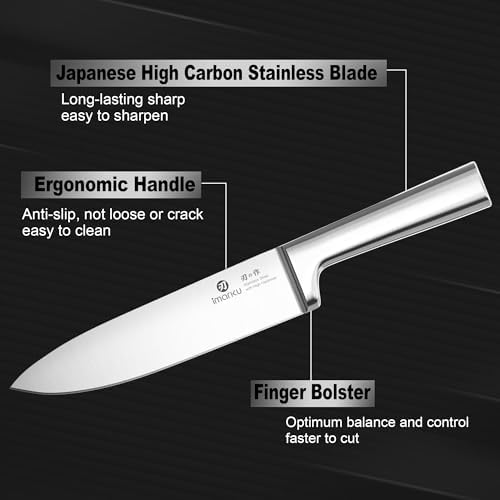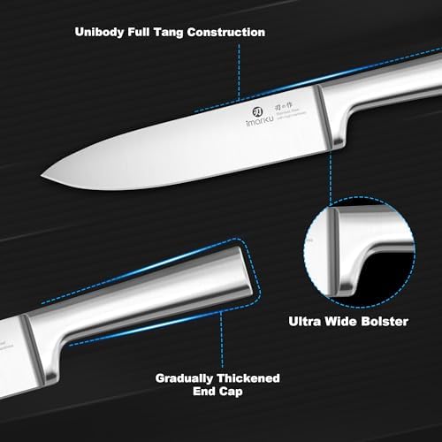 Ergonomic Full-Tang Handle for Comfort & Control: Designed with an ergonomic full-tang handle, this stainless steel knife set offers excellent balance, stability, and grip. The integrated stainless steel handle enhances durability while reducing fatigue, allowing you to prepare ingredients safely and efficiently during extended cooking sessions.