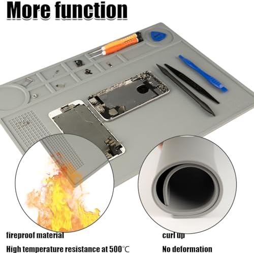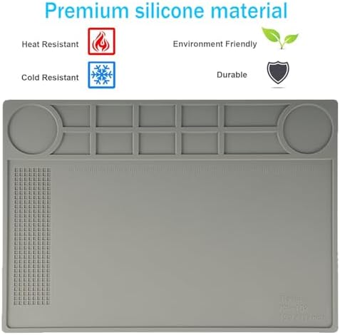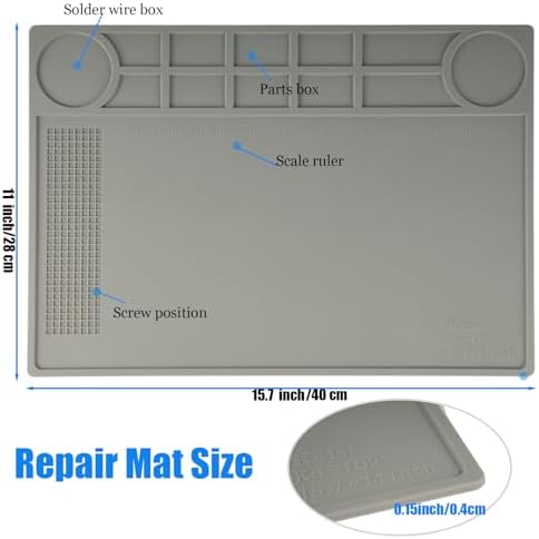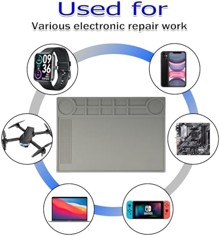 Repair Mat Size: Our silicone soldering mat measures 15.75’’ x 11’’ (40cm x 28cm), providing ample space for various repair projects. Whether you are soldering electronics assemblies or repairing circuit boards, such as cell phones, laptops, computers, sports watches, cameras, smart toys, or eyeglasses, this mat will meet all your demands.
