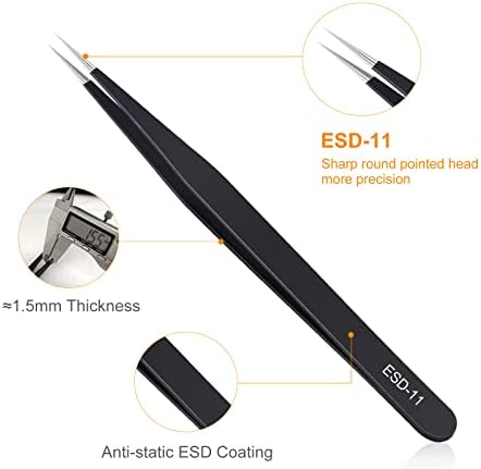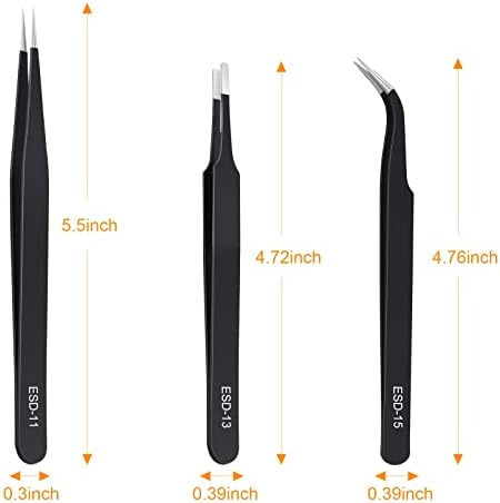 ► 3PCS Precision Tweezers Set : The package includes 3 PCS different tweezers. With ESD number on its handle, people can easily identify which tweezer they want.