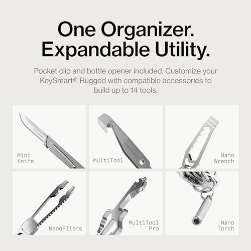 Add KeySmart Accessories – Create a reliable utility organizer and compact keyholder multitool with our wide range of add-ons and mini tools, such as the; Quick Release Keychain, Bottle Opener, Pocket Clip, MultiTool, NanoPliers, and many more