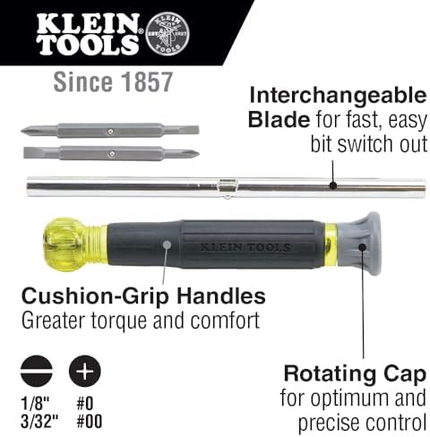 PRECISION AND VERSATILITY: Klein Tools 4-in-1 Electronics Screwdriver with non-magnetic tips for precise work on electronics