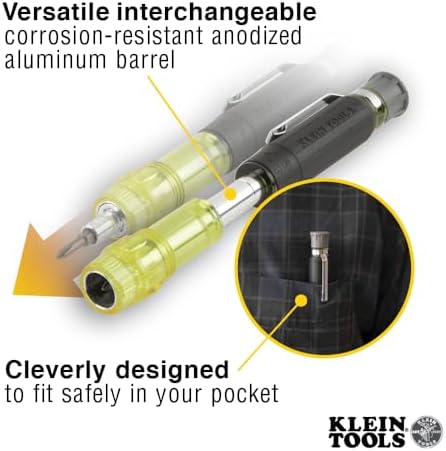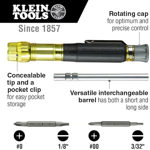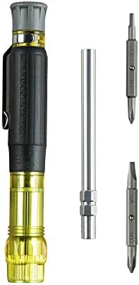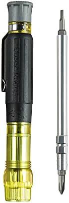 The Pocket 4-in-1 Electronics Screwdriver has a concealable tip and a pocket clip for convenient pocket storage. To use, simply slide the cuff back to expose the tip and shaft. Flip the barrel to the long-side shaft to extend your reach. This driver is designed for precision work. It features a swivel cap for optimum control, outstanding comfort with our exclusive Cushion-Grip handle, and precision milled tips to fit screw openings securely. Corrosion-resistant anodized aluminum barrel that includes two double-ended bits made of the highest quality tempered steel, carefully heat-treated for maximum strength.