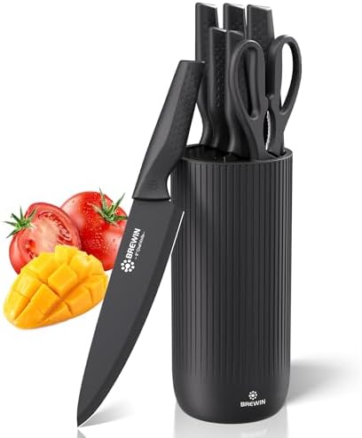 COMPLETE PROFESSIONAL SET – This Brewin knife set includes an 8” chef knife, 8” slicing knife, 8” bread knife, 5” utility knife, 5” santoku knife, kitchen scissors, and a universal knife block. Made with 1.4116 stainless steel and a sleek, modern aesthetic block, it covers essential kitchen tasks in one complete set