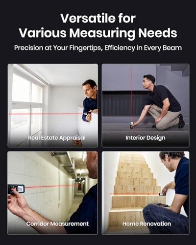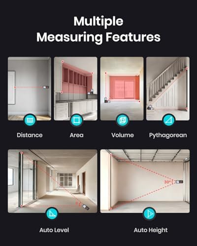 [UNIQUE FUNCTIONS] The high precision laser head component can be measured quickly and accurately in 0.5s, Auto-Level: Only measure the hypotenuse, the horizontal distance and vertical height will be calculated automatically; Auto-height: Only measure 2 hypotenuses, the vertical height will be calculated automatically; Fast measurement: automatic calculation of area and volume with one button operation
