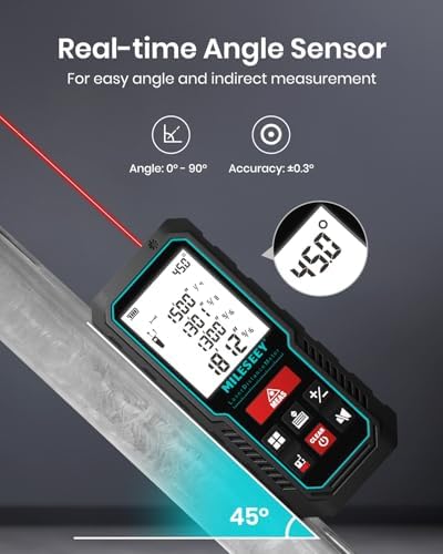 [Reliable and Efficient] Upgraded electronic level with accuracy up to +/-0.3°and laser tape measure with accuracy up to +/-2mm, MILESEEY D5 delivers more accurate and faster measurements of angle and distance than bubble level meters. And with real-time display of electronic angle, it is much easier for users to find the horizontal direction, which guarantees high-accuracy measure results