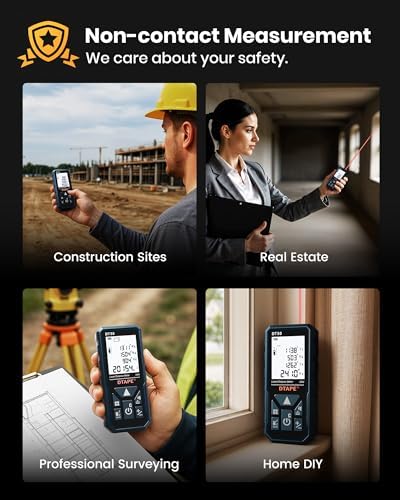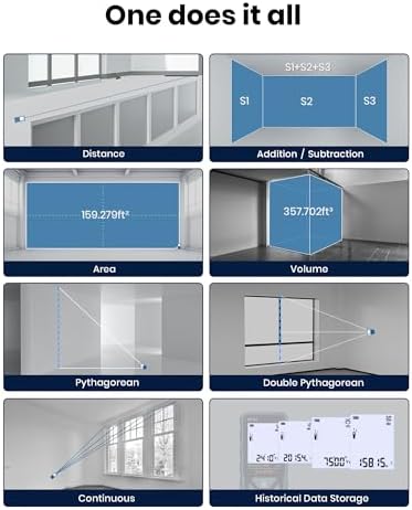 ▲Multiple Measurement Modes: Distance, area, volume, Pythagoras, second Pythagoras, data addition/subtraction – it’s all here, along with real-time continuous measurement and data storage. Compact, ergonomic, and ready to handle any measuring challenge. This digital laser measuring device is ideal for builders, realtors, carpenters, landscapers, and DIY enthusiasts.