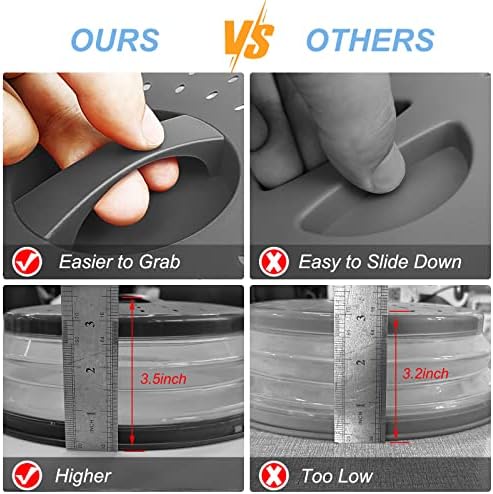 【Easy To Grid】LekDrok Microwave Lid is designed by a Easy-Grid-Handle. It is easy to fetch the cover out of microwave without burning hands compared to others grid-handle which is short and easy to slip.