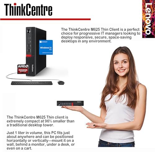 【Small Size, Powerful Impact】The ThinkCentre M625 Thin client is extremely compact at 96% smaller than a traditional desktop tower. Just 1 liter in volume, this PC fits just about anywhere and can be positioned horizontally or vertically—mount it on a wall, behind a monitor, under a desk, or even on a cart. With a base clock speed of 1.6GHz and max turbo frequency of 2.4GHz the AMD A4-9120C leaves little to be desired over the previous generations.