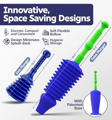 Easy to Clean: Both accordion plungers are made with materials that are a breeze to clean. Immerse the plungers in clean water or spray them with bleach before rinsing. The toilet plunger comes with a holder for hygienic and compact storage.