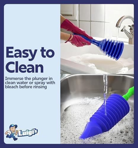 Unique Effective Design: These toilet kitchen sink plungers look different, but they work! Their unique design creates powerful pressure with every push and pull. Luigi’s suction cups’ accordion design is superior to traditional plungers.