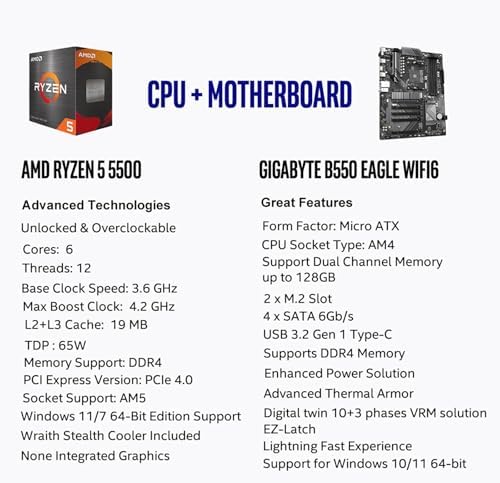 MICRO CENTER AMD Ryzen 5 5500 Desktop Processor Bundle with GIGABYTE B550 Eagle WIFI6 ATX Motherboard