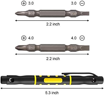 What you receive: package comes with 4 pieces 4 in 1 mini pen screwdriver, each pen screwdriver contains 4 pieces double-end screwdriver bits, including 2 pieces crossing bits, 2 pieces flathead bits, also comes with 1 piece mini magnet, enough quantity and different bits to meet your various needs