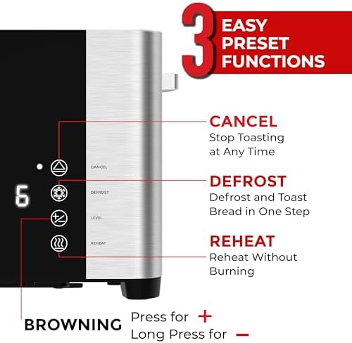 Touch Controls & LED Display — Modern & Intuitive – Sleek capacitive touch buttons and a clear LED display put you in full control of browning level and function. A single lever activates both slots simultaneously, even when toasting just one slice. Memory recall keeps your preferred settings saved so your morning is automatic. Cord storage keeps your countertop clutter-free, and the slim stainless steel profile fits seamlessly in any modern kitchen.