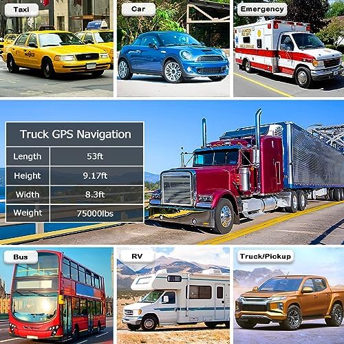 【Advanced Lane Guidance】OHREX Truck GPS navigator Customized truck route for the size and weight of your truck, Plus alerts for upcoming bridge heights, weight limits. intelligent voice Alerts for dangerous curves, speed changes, speed cameras, railroad crossings, animal crossings, traffic lights. And support Multiple Vehicle Modes, including Car, Truck (include Truck Commercial/semi Truck), Ambulance, Bus and Taxi.