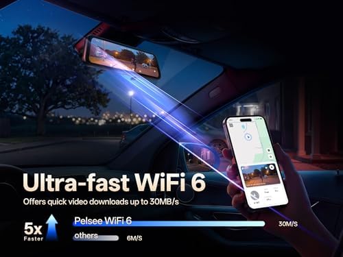 Wi-Fi 6 & OTA Upgrade: Equipped with Wi-Fi 6 technology, this mirror dash camera achieves transfer speeds of up to 30MB/s, enabling wireless access to footage directly on your phone.You can preview, download, and manage videos anytime with pelsee app, while also viewing detailed GPS data such as route, speed, and location. Additionally, Over-the-Air (OTA) updates keep your device up to date with the latest features and performance improvements