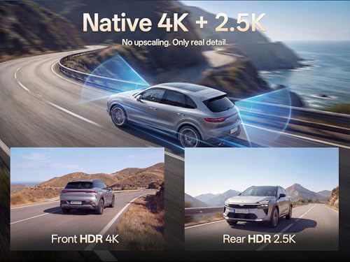 True 4K+2.5K Dual Recording: The front camera captures native 3840×2160P resolution powered by an 8MP GC8613 sensor, delivering genuine 4K detail without digital upscaling. Unlike interpolated 4K that stretches 1080P footage, every pixel is captured physically for sharper license plates and critical evidence. Simultaneously, the rear camera records native 2560x1440P, ensuring comprehensive dual-channel clarity on the road