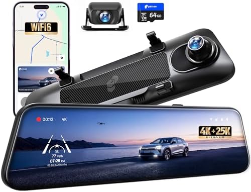Complete Package & Assured Support: Start recording immediately with the included 64GB memory card in S12 dash cam mirror. For 24/7 parking surveillance, easily enable the feature by installing the optional hardwire kit (sold separately). Backed by our dedicated technical support team, we ensure your dash cam delivers continuous, reliable performance