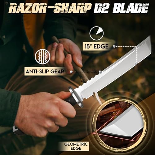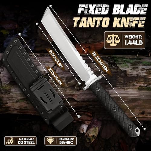 Built for Tough Outdoor Tasks – Engineered as a rugged fixed blade knife, this full-tang tanto easily powers through dense brush, wood, and outdoor prep work. Its balanced Japanese tanto knife design delivers strength and control whether camping, hiking, or handling survival scenarios.