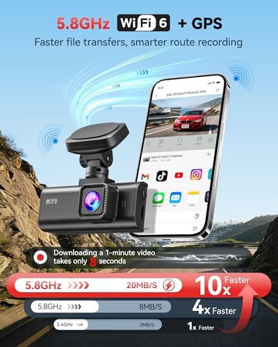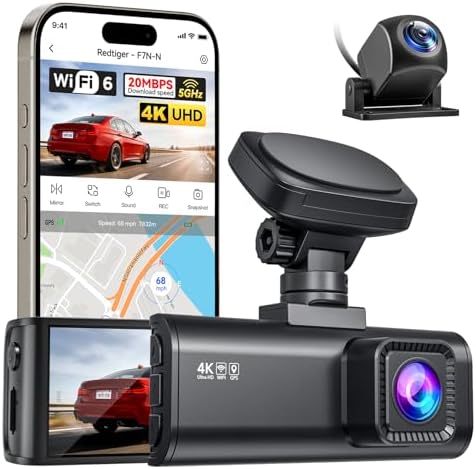 [20MB/s 5.8GHz WiFi Transfer] This advanced 5.8GHz WiFi dash cam lets you transfer videos at up to 20MB/s—saving a 1-minute clip in just 8 seconds. With the Redtiger Cam app, instantly access dash cam footage, GPS route tracking, OTA updates, and more from your smartphone. A fast, smart dash cam 4K system built for drivers who want quick sharing, easy control, and real-time access anytime, anywhere.