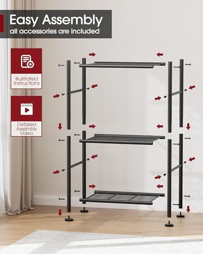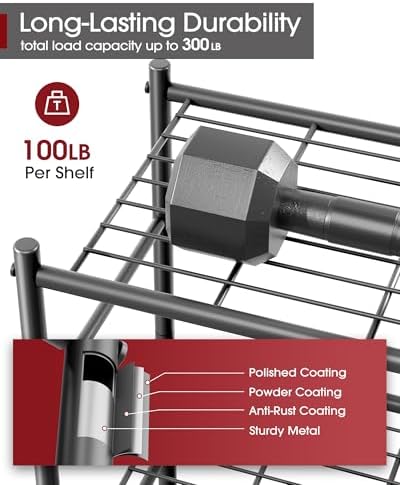 LONG-LASTING DURABILITY: The Sakugi heavy-duty shelving unit and storage rack is made of high-quality metal, designed to withstand daily use. Its smooth, protective coating not only guards against dents and scratches but also makes it waterproof and rust-resistant. The pantry shelf is perfect for humid areas like kitchens or bathrooms, and a simple wipe with a damp cloth keeps it looking new.