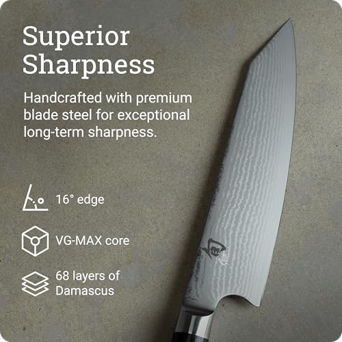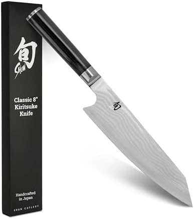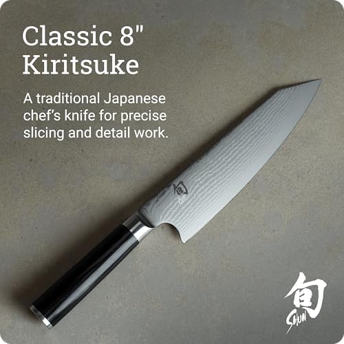 JAPANESE KIRITSUKE KNIFE: The Shun Classic 8-inch Kiritsuke Knife is expertly designed for a variety of kitchen tasks, from julienning or dicing vegetables to slicing and portioning boneless meat.