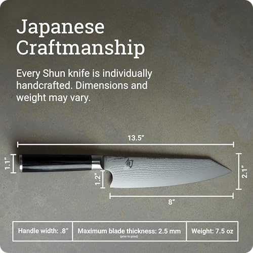 JAPANESE CRAFTSMANSHIP: Each Shun knife is meticulously handcrafted in Japan, reflecting a legacy of traditional knife-making expertise and a dedication to superior quality. Supported by free sharpening and honing.