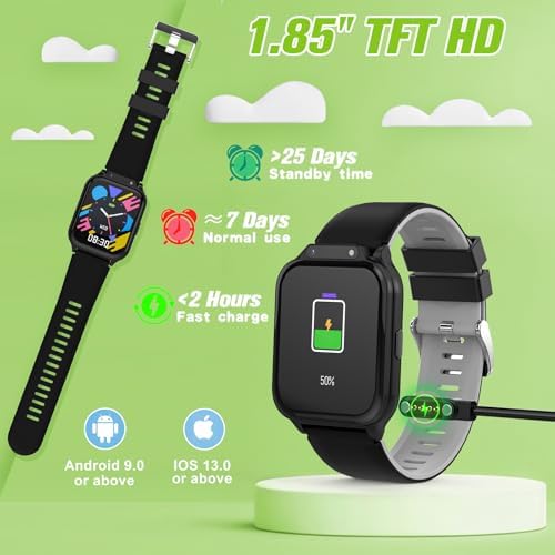 NO APP/PHONE REQUIRED – The kids digital watch can be used directly without app/phone. But with the APP, you could explore more functions. Tips: the kids boys girls watch does not support SIM card. Compatible with Android 9.0+ and iOS 13.0+ smartphones.