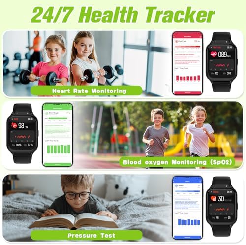 HEALTH & SLEEP MONITORING – Stay informed about your child’s heart rate, blood oxygen, and stress data by selecting the 24/7 detection mode. The sleep-monitor feature of our kids watch provides insights into various sleep stages, such as the duration of deep sleep, and offers helpful tips to improve sleep quality.