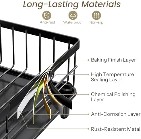 Built to Last: Made from stainless steel rack and a plastic drainboard, this dish dryer rack is rust-resistant and can serve for a long-term use. Easy to rinse and maintain—made for daily use in busy homes