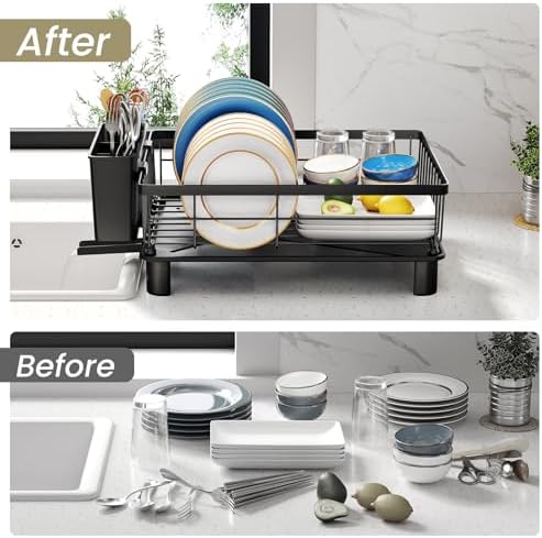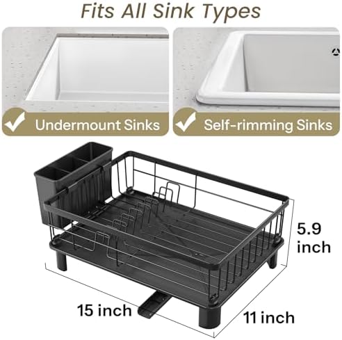 Compact Design: Measuring just 15″ L x 11″ W x 5.9″ H, this space-saving dish drying rack is perfect for small kitchens or apartments—keeps up to 10 plates, bowls, and cups neatly organized without taking over your countertop