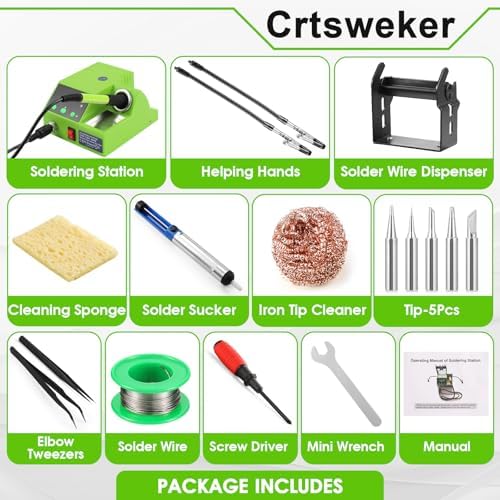 【WIDELY APPLICATION】The compact soldering station helps save valuable work space and is suitable for beginners and welders using different shaped soldering tips to weld circuit boards, home DIY, crafts, and repair mobile phones, appliances and electronics.