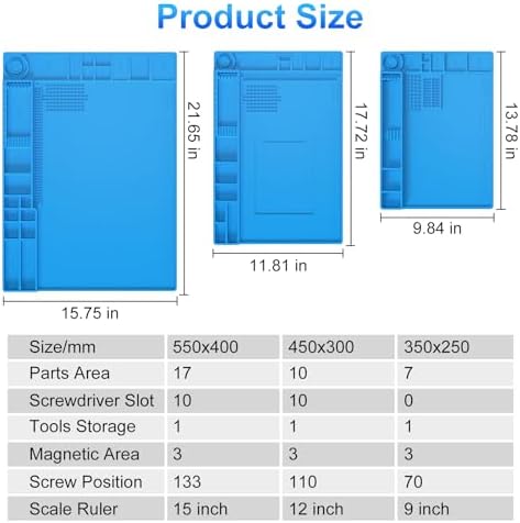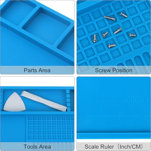 Easy to Clean & Non-Slip: Dirt-resistant and corrosion-resistant, this magnetic screw mat is easy to clean with water or alcohol. It features a non-slip surface on both sides to keep it securely in place and raised edges to prevent parts from rolling off. For added convenience, our electronic work mat includes built-in metric and imperial rulers for precise measurements
