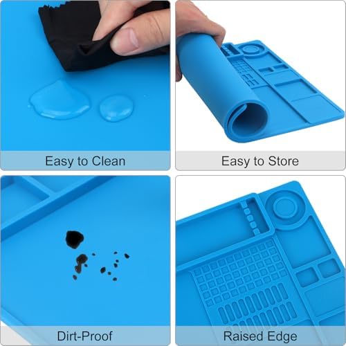 Heat-Resistant Silicone: Made from premium, soft silicone that endures temperatures up to 932°F. This magnetic project mat provides a non-scratch surface to protect your electronics and shields your workbench from heat damage caused by heat guns or soldering irons. The high elasticity of soldering pad ensures it won’t easily deform, making it easy to store by folding or rolling