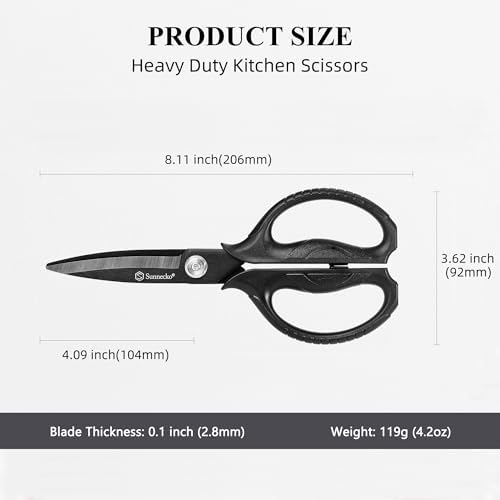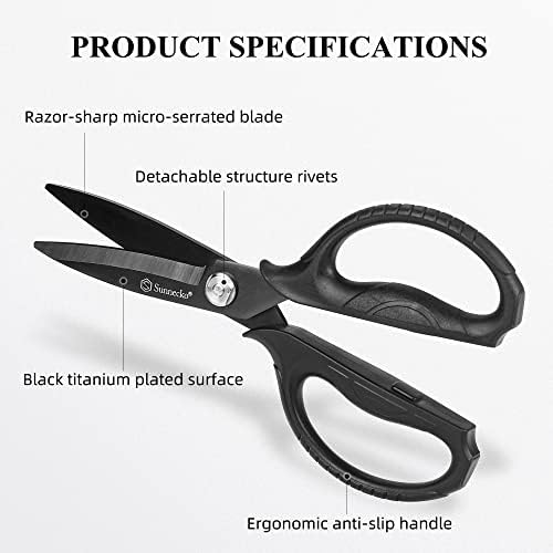 Extra Sharp Kitchen Scissors – Our heavy duty scissors are equipped with fine serrations blades that greatly improve sharpness and control when slicing through tough materials like chicken bones and thick vegetables.