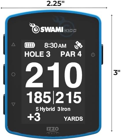 Introducing the Swami Kiss 2.0 Golf Handheld GPS Rangefinder, the must-have tool for any serious golfer. With its advanced features and cutting-edge technology, this GPS rangefinder will take your game to the next level. Say goodbye to guesswork and hello to precision with our precise distance measurement capabilities. With access to over 38,000 course maps, auto recognition, and individual shot distance measurement, you can trust that you’re getting the most accurate readings possible. But it’s not just about precision – our rangefinder also boasts an accurate distance display. You can choose from two different modes: front, center, and back distance readings; or a simplified mode that displays the center of the green with front and back distances on the next screen. No more confusion or calculations needed – just clear, easy-to-read yardage readings. And let’s not forget about the scorecard tracker. Keep track of your scorecard, greens in regulation (GIR), and putts per round (PPR) with ease. Our GPS rangefinder also has a universal micro USB charging port and a water-resistant body, so you can focus on your game without worrying about the weather. One of the standout features of the Swami Kiss 2.0 is its magnetic hold. With a powerful integrated magnet, you can easily attach the rangefinder to any cart frame for quick and convenient access. No more fumbling around in your bag – simply grab your rangefinder and go. But that’s not all – our rangefinder also features i-Caddie technology, which offers personalized club suggestions based on your distance from the target. This innovative technology takes out the guesswork and helps you make the best club selection for your shot. And with its waterproof and fog-resistant design, you can trust that the Swami Kiss 2.0 will perform in any weather conditions. Available in grey or blue, this sleek and stylish rangefinder will not only improve your game but also elevate your style on the course. Don’t settle for less – upgrade to the Swami Kiss 2.0 Golf Handheld GPS Rangefinder and see the difference for yourself.
