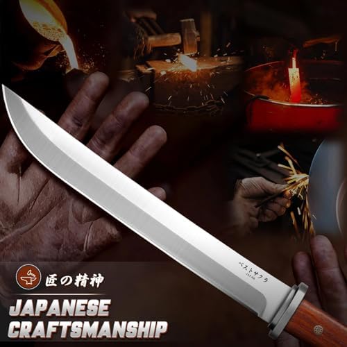 VERSATILE OUTDOOR PARTNER: This full tang outdoor knife features a reinforced spine and a long, curved blade. When your hands are cold or tired, its forward-weighted curve aligns naturally with your swing, delivering steady power for chopping and clearing. A reliable companion for survival, camping, hunting, or hiking, it is built to handle any challenge.