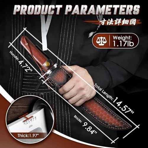 QUALITY REFLECTS SINCERITY: Forged using traditional Japanese methods, multi-layer steel folding and clay tempering, this tanto knife with 5mm spine provides unyielding strength for heavy-duty tasks, while the meticulously honed cutting geometry ensures effortless, precise cuts through various materials, from dense cordage to fibrous wood.