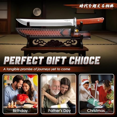 IDEA AS GIFT: Combining authentic craftsmanship, functional design, and natural beauty, this fixed blade knife with sheath makes a memorable gift. It represents readiness and quality, destined to be treasured by outdoor enthusiasts and collectors as a timeless, practical heirloom.