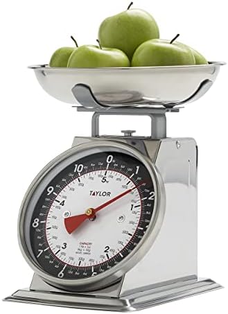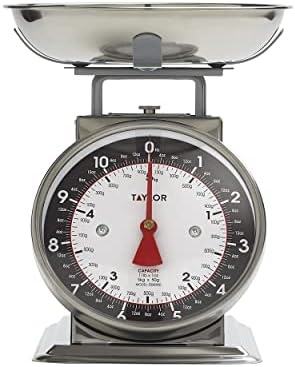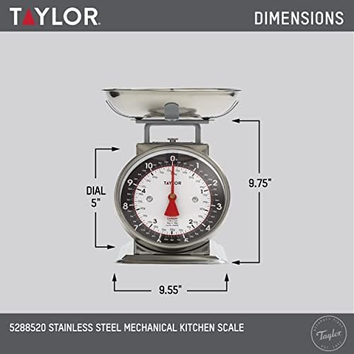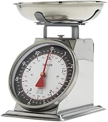 Achieve precise measurements every time with the Taylor Mechanical Kitchen Weighing Food Scale, featuring a sleek black and silver design and a capacity of up to 11 pounds. This reliable scale comes with a large, removable bowl to conveniently weigh ingredients in both grams and ounces, making it perfect for cooking, baking, and portion control. The easy-to-read dial provides accurate and consistent measurements without the need for batteries or electronics. Its compact size fits easily on any countertop and can be stored effortlessly when not in use. Constructed with durable materials and designed for user-friendly operation, this scale is an essential tool for home cooks and professional chefs alike. Simplify your kitchen tasks and enjoy consistent results with this classic, mechanical food scale.