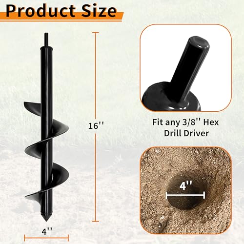 Wide Compatibility with Drills–Equipped with a standard 3/8″ hex shank, this earth auger works seamlessly with most cordless and electric drills. It’s simple to attach and a practical, versatile tool for every home gardener.