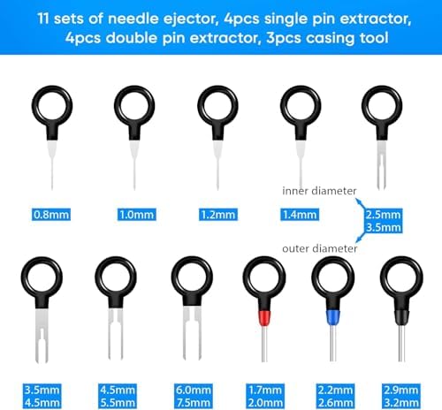 【Easy to Use】The terminal pin removal tool is easy to use, just push and pull the terminal pins with connector removal tool for removal effortlessly from the wire harness connectors without any damage. Kindly Note: Most of the wire harnesses are held in place with barb clips. You can use a tool to lift or flatten the barbs, and then gently pull out the wire ends. Pay special attention to strength and direction