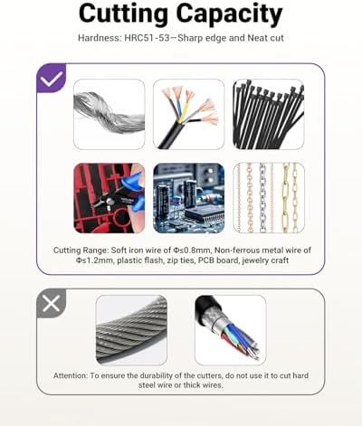 WIDELY APPLICATION – The micro wire cutter can be used to cut copper wire and aluminum wire≤16 AWG( Φ1.3mm), iron wire of Φ≤0.8mm, PCB board, zip tie, plastic burrs, jewelry craft, soft copper wire, soft iron wire, etc, not for steel wires.