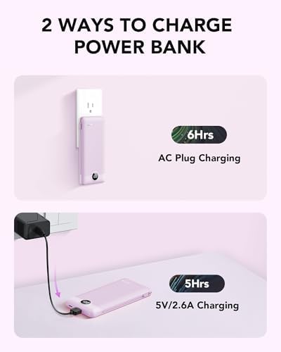 Use the 5V/2.6 power adapter to charge the power bank, it can be fully charged in 5 hours. Use the built-in AC plug for charging, the portable charger can be fully charged in 6 hours.