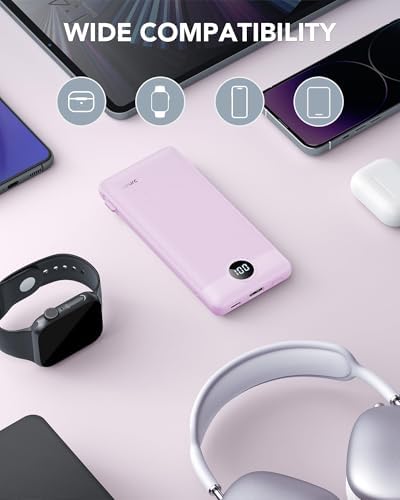 [Wide Compatibility] Using the built-in charging cables to charge, the portable battery charger is compatible with iPhone, Android devices, and USB-C most mobile phones and smart devices etc. This battery pack can meet most of the charging needs of daily life.