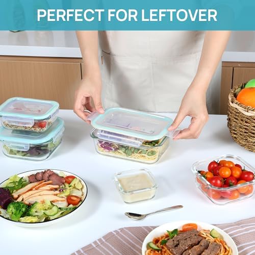【BPA Free and Food Grade Material】The glass food containers is 100% BPA Free, crystal-clear glass making it easy to see what’s inside. Stains-resistant material for easy cleaning and keep glass containers looks like new.